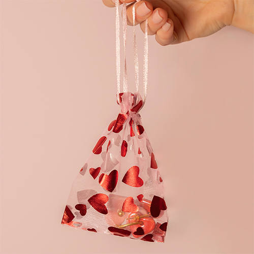 Jewellery Organza Bag 7x9cm heart White-red