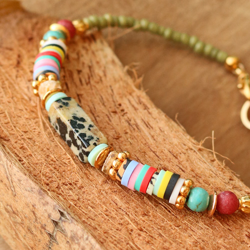 Natural stone beads Dalmatian Stone tubes Greige Black
