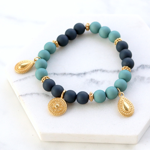 Our new collection of acrylic beads is the must-have item for making trendy jewellery. The acrylic beads can be used in all kinds of jewellery and in any style you like. We like to combine different sizes of beads for a nice effect. The bracelets are strung on elastic cord and combined with natural stone beads, Polaris Elements beads and DQ European metal beads and charms. The perfect match! The acrylic beads have a nice matt look and are available in different colours. Choose your favourites and get started!